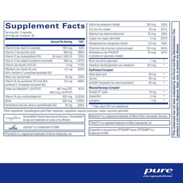 Взрослым следует принимать по три капсулы без ГМО во время еды. При рекомендуемой дозировке, каждая бутылка на 90 капсул с питательными веществами VisionPro от Pure Encapsulations должна храниться около месяца.