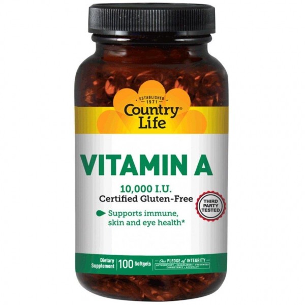 Витамин А Vitamin A 10000 I. U 100 Softgels Country Life