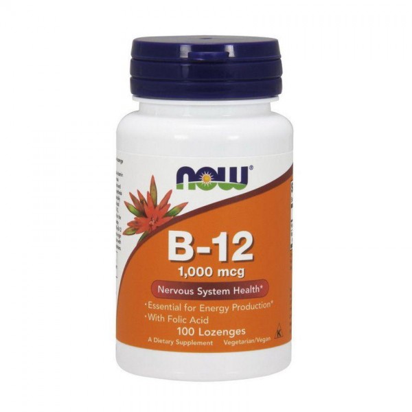 Витамин В12 – это растворимый в воде витамин (цианокобаламин), необходимый для поддержания здоровья нервной системы и для стимуляции метаболизма жиров и белков. Витамин В12 необходим для синтеза ДНК в процессе деления клеток, поэтому он особенно важен для быстрой репликации клеток, таких как эритроциты. При этом, надлежащий уровень употребления витамина В12, вместе с фолиевой кислотой и витамином В6, способствует поддержанию здорового уровня сыворотки гомоцистеина, улучшая состояние сосудистой системы. Так как витамин В12 содержится преимущественно в животных продуктах, вегетарианцы рискуют получить дефицит витамина В12. Эта проблема может быть решена с помощью этой добавки. B-12 1000 mсg от NOW – вегетарианский/веганский продукт (не содержит ингредиентов животного происхождения).