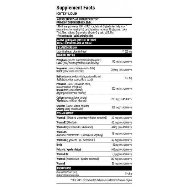 Состав Extrifit Iontex Liquid (1 порция = 20ml)