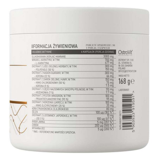 Обратите внимание, что Жиросжигатель Ostrovit Slim Care Glucomannan & L-Carnitine & Green Tea Extract 180 caps не является лекарственным средством. Не заменяет полноценное питание. Не превышайте рекомендуемую суточную дозу. Используйте согласно инструкции изготовителя, которая находится на упаковке или внутри нее.