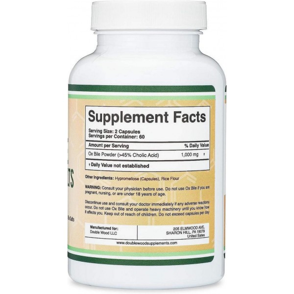 Желчные кислоты Double Wood Ox Bile Acid Salts 1000 mg, 120capsules