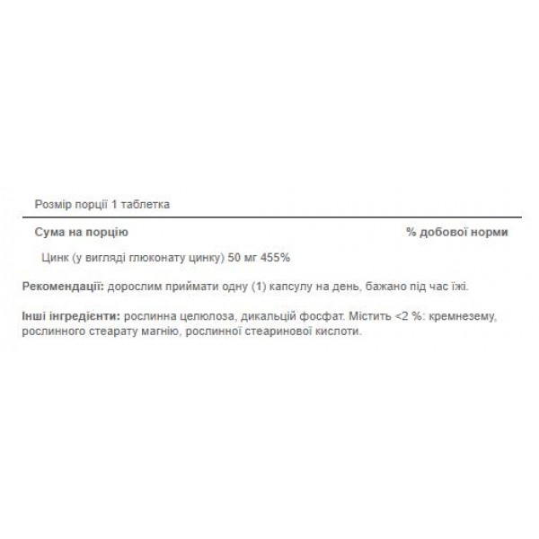 Обратите внимание, что Цинк Глюконат, Zinc 50 mg - 100 Caplets не является лекарственным средством. Не заменяет полноценное питание. Не превышайте рекомендуемую суточную дозу. Используйте согласно инструкции изготовителя, которая находится на упаковке или внутри нее.