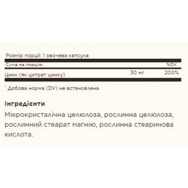 Zinc Citrate 30mg - 100 vcaps Solgar