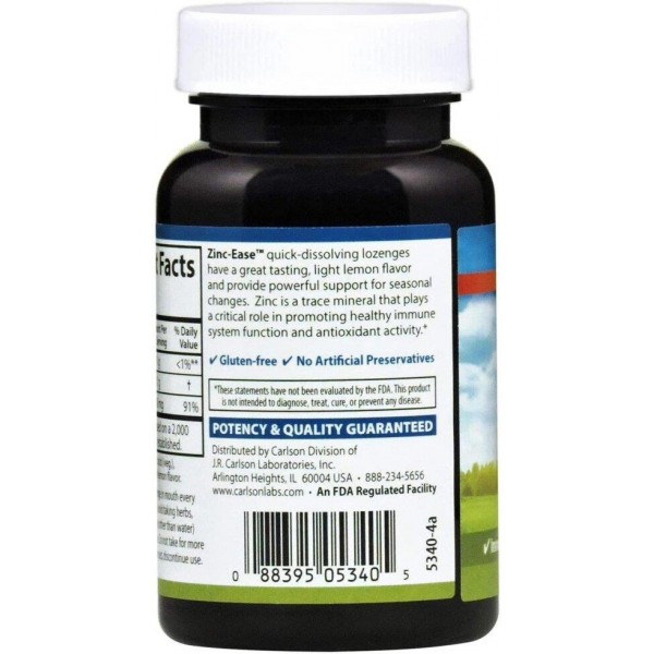 Пастилки Zinc-Ease от компании Carlson Labs с восхитительным вкусом лимона содержат цитрат цинка, хорошо усваиваемую форму цинка, которая хорошо переносится пищеварительным трактом нашего организма. Каждая таблетка Zinc-Ease содержит 10 мг цинка для поддержания здоровой функции иммунной системы и повышения антиоксидантной активности.