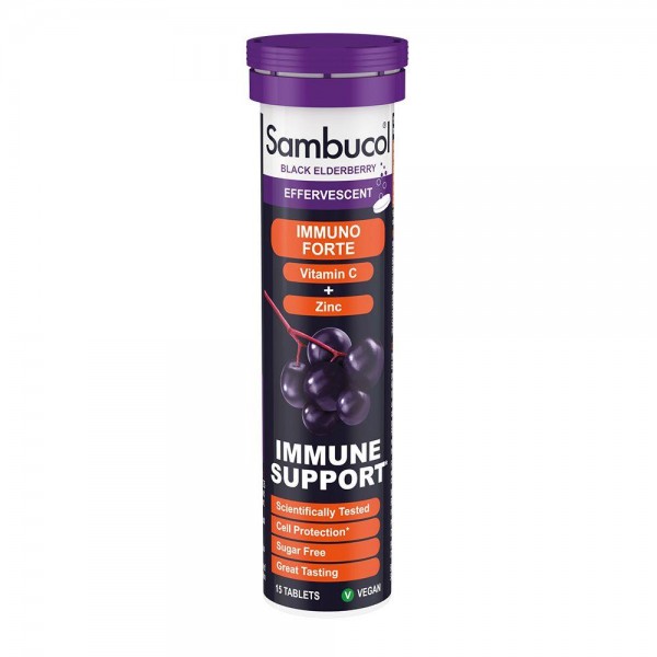 Розчинні шипучі таблетки Sambucol Effervescent - біологічно активна добавка для підтримки імунної системи. Активний компонент AntiVirin®, високий вміст Вітаміну С, Цинку і антиоксидантів підвищують природну захист вашого організму.