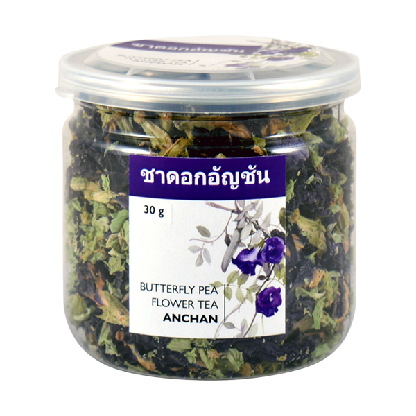 Ця цілюща рослина має багато назв: кліторія, анчан, тайська орхідея. У складі синього чаю Анчан є комплекс вітамінів - С, К, D, Е, вітаміни групи В і такі елементи, як марганець, залізо і фосфор. Смак - легкий і трав'яний. Дехто помітить нотки вареної кукурудзи і свіжого зеленого горошку. Післясмак досить довгий і солодкуватий, добре освіжає. Воду для заварювання чаю слід закип'ятити і дати їй охолонути до 90 градусів. При такій температурі всі цілющі властивості перейдуть в напій. Сухі квіти заварюють гарячою водою, але через декілька секунд її зливають і потім повторно заварюють чай, давши йому настоятися 5 хвилин. Синій чай смакує з додаванням лимону меду або цкукру.