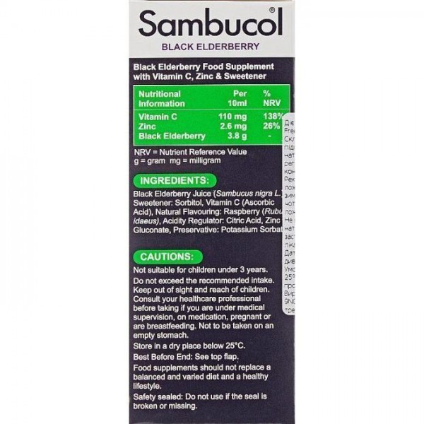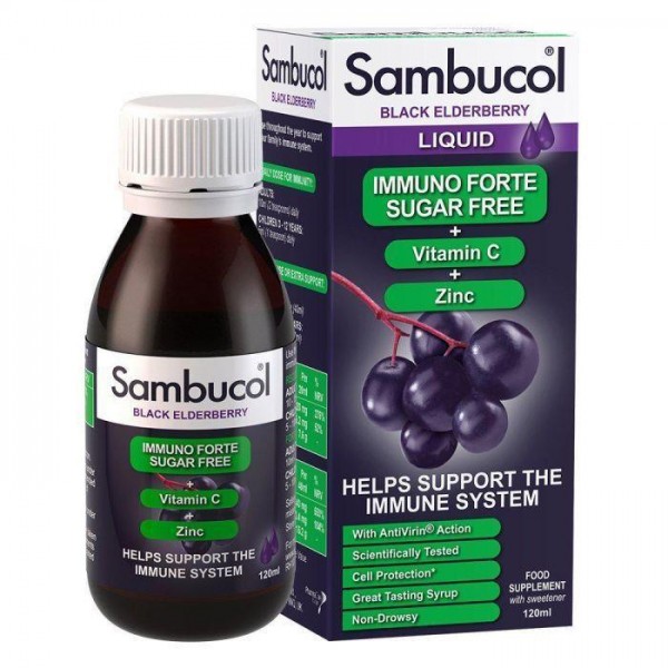 Сироп для імунітету Чорна бузина + вітамін С цинк Sambucol (Immuno Forte Liquid Sugar Free) 120 мл