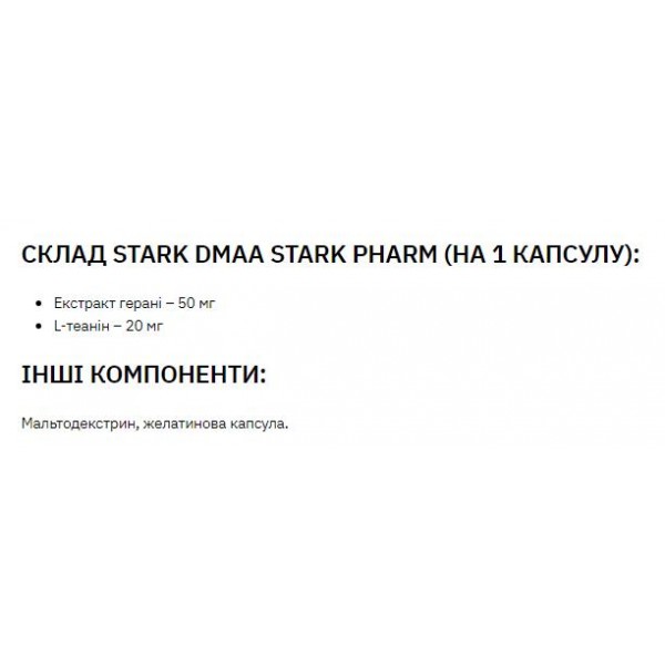 Передтренувальний комплекс, Stark DMAA/Caffeine 100 mg 200 mg - 30caps Stark Pharm
