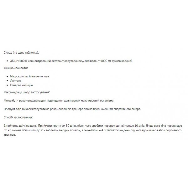 Зверніть увагу, що Екстракт елеутерококу, Stark Eleuthero 35mg - 200 caps не є лікарським засобом. Не замінює повноцінного харчування. Не перевищуйте рекомендовану добову дозу. Використовуйте згідно з інструкцією виробника, яка є на упаковці або всередині неї.
