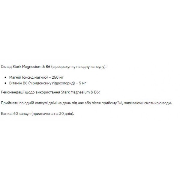 Магній і Вітамін В6, Stark Magnesium/B6 - 60 caps Stark Pharm