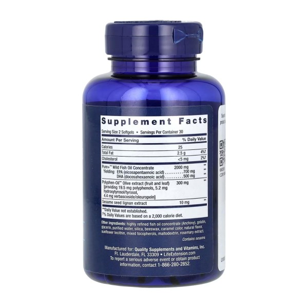 Life Extension Super Omega-3 EPA/DHA Fish Oil Sesame Lignans & Olive Extract - 60 softgels