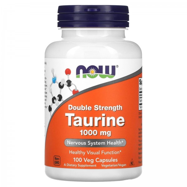 Таурин, Taurine, Now Foods, подвійна сила, 1000 мг, 100 вегетаріанських капсул