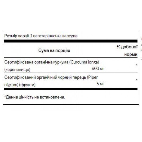 Зверніть увагу, що Turmeric Black Pepper – 60veg caps не є лікарським засобом. Не замінює повноцінне харчування. Не перевищуйте добову дозу, що рекомендується. Використовуйте згідно з інструкцією виробника, яка знаходиться на упаковці або всередині неї.