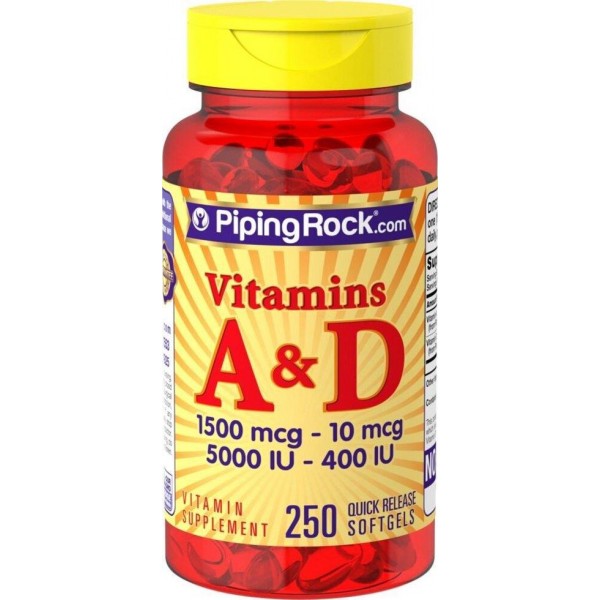 Vitamin A & D3 A5000iu D400iu 250 Softgels Piping Rock
