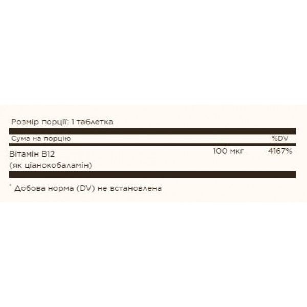 Зверніть увагу, що Vitamin B12 100 mcg - 100 Tabs не є лікарським засобом. Не замінює повноцінного харчування. Не перевищуйте рекомендовану добову дозу. Використовуйте згідно з інструкцією виробника, яка є на упаковці або всередині неї.