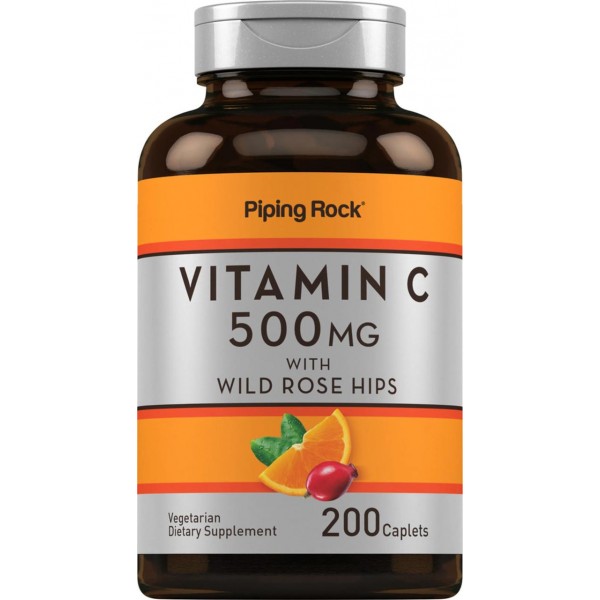Vitamin C 500 mg with Wild Rose Hips, 200 Caplets Piping Rock