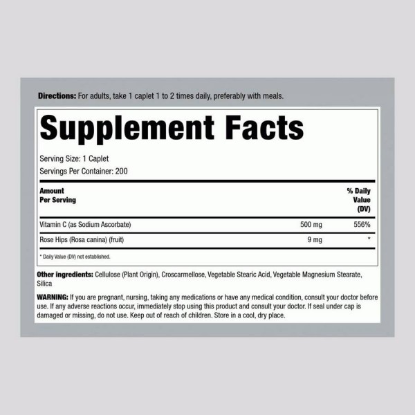 Зверніть увагу, що Vitamin C 500 mg with Wild Rose Hips, 200 Caplets не є лікарським засобом. Не замінює повноцінного харчування. Не перевищуйте рекомендовану добову дозу. Використовуйте згідно з інструкцією виробника, яка є на упаковці або всередині неї.