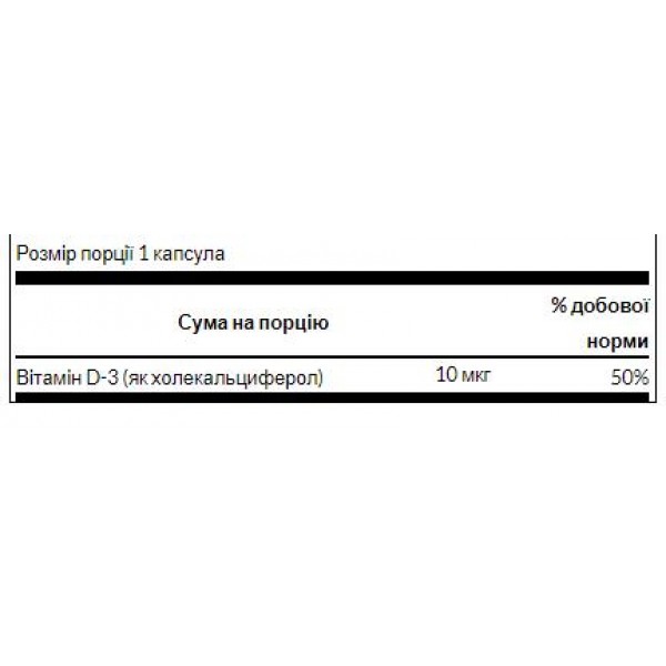 Зверніть увагу, що Вітамін Д3, Vitamin D-3 400iu - 250caps не є лікарським засобом. Не замінює повноцінного харчування. Не перевищуйте рекомендовану добову дозу. Використовуйте згідно з інструкцією виробника, яка є на упаковці або всередині неї.