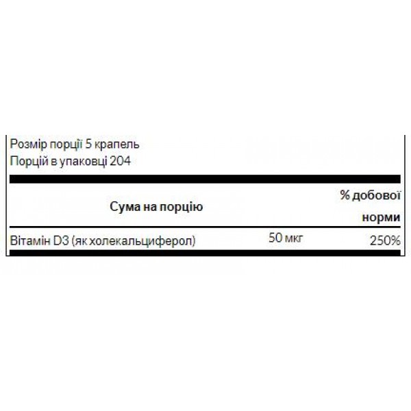 Зверніть увагу, що Vitamin D3 Bone and Immune Health 2000 IU (50mcg) -1fl(29.6ml) не є лікарським засобом. Не замінює повноцінного харчування. Не перевищуйте рекомендовану добову дозу. Використовуйте згідно з інструкцією виробника, яка є на упаковці або всередині неї.