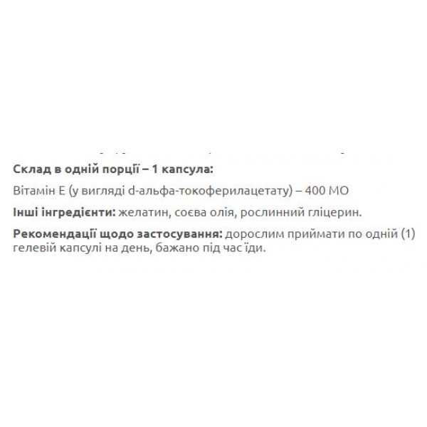- Містить 268 мг (400 IU) вітаміну E в одній капсулі.