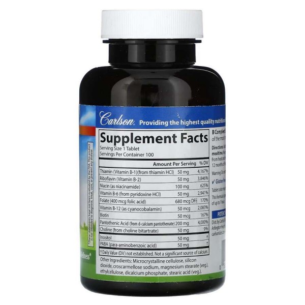 Вітаміни групи В 50 Carlson B Compleet 50, 100 Tablets Carlsson