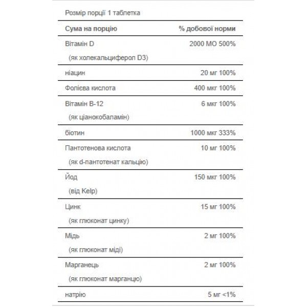 Зверніть увагу, що Вітаміни для волосся, Vitamins for the Hair One per Day Formula - 60 tabs не є лікарським засобом. Не замінює повноцінного харчування. Не перевищуйте рекомендовану добову дозу. Використовуйте згідно з інструкцією виробника, яка є на упаковці або всередині неї.