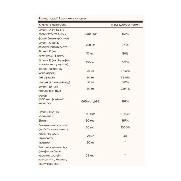 Мультивітаміни (Vitamins Only) - це мультивітамінний комплекс з високим вмістом поживних речовин відмінної якості, багатий на вітаміни, антиоксиданти і каротиноїди.