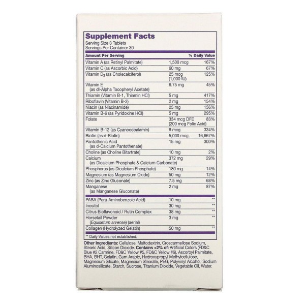 | Biotin (as d-Biotin) | 5,000 mcg | 1667% |