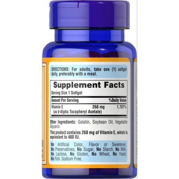 Puritans Pride Vitamin E-400 IU - комплекс, що забезпечує організм атлета достатньою кількістю вітаміну Е. Цей вітамін є антиоксидантом і запобігає передчасному старінню клітин. Також сприяє нормальній роботі імунної системи та підтримує здоров'я серцево-судинної системи.