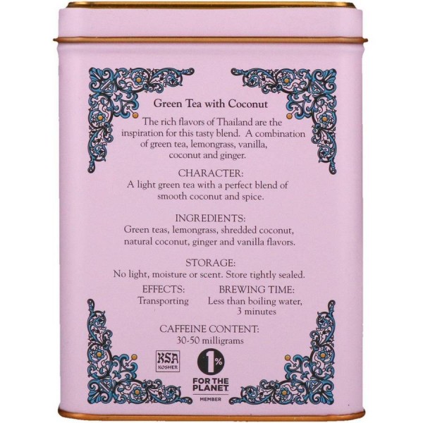 Зелений чай ретельно змішується з лимонною травою, подрібненим кокосовим горіхом, натуральним кокосовим горіхом, ванільним і імбирним смаком.