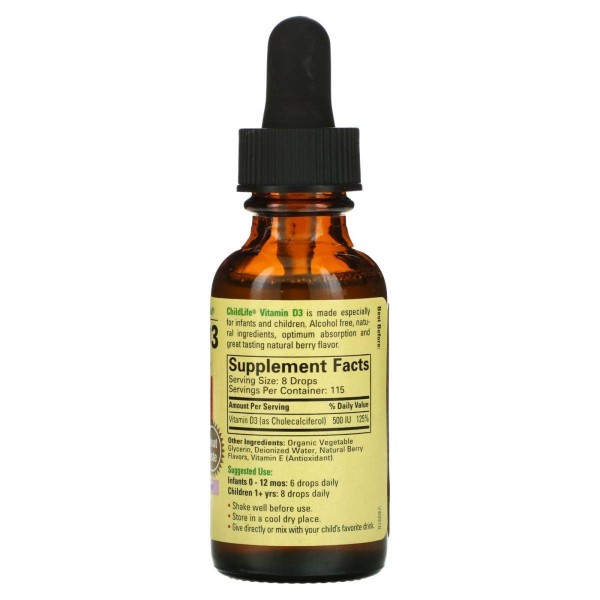 Вітамін D3 від ChildLife розроблений спеціально для немовлят і дітей. Не містить спирту, з натуральних інгредієнтів, добре засвоюється і має чудовий смак натуральних ягід.