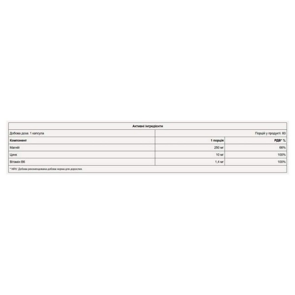 Зверніть увагу, що ZMB - 60 caps не є лікарським засобом. Не замінює повноцінного харчування. Не перевищуйте рекомендовану добову дозу. Використовуйте згідно з інструкцією виробника, яка є на упаковці або всередині неї.